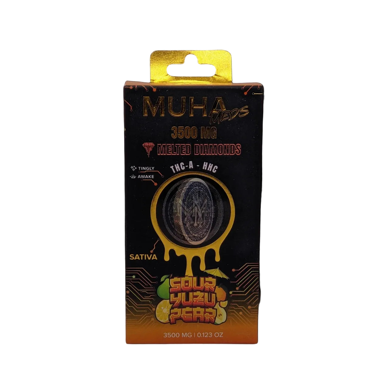 Muha Meds Melted Diamonds Disposable, featuring 3.5 grams of melted THC-A Diamonds and potent HHC to create a lively disposable vape.
