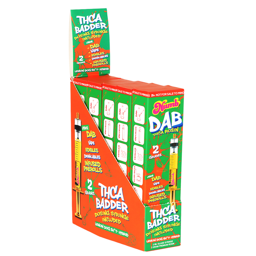Enjoy quality crafted cannabinoids with ease using the Numb THCA Live Rosin Badder Glass Syringe. Each syringe comes pre-loaded with 2 grams of delicious badder, enhanced with live rosin! The syringe is easy to use for beginners and conneisseurs making dosage easier than ever, whether enjoying a delightful dab or spicing up a bowl or pre-roll.